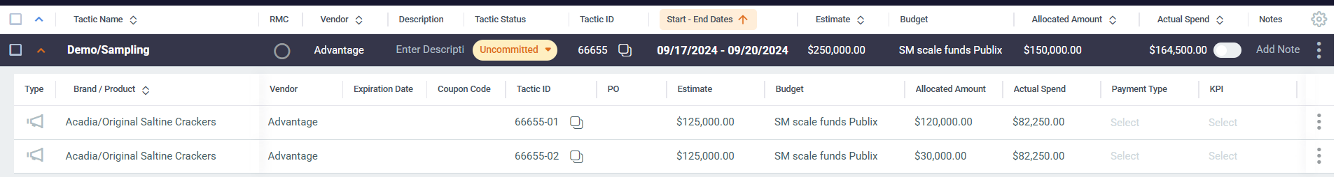 Navigate to the tactic level on the Event Spend tab or from the Tactics Page.